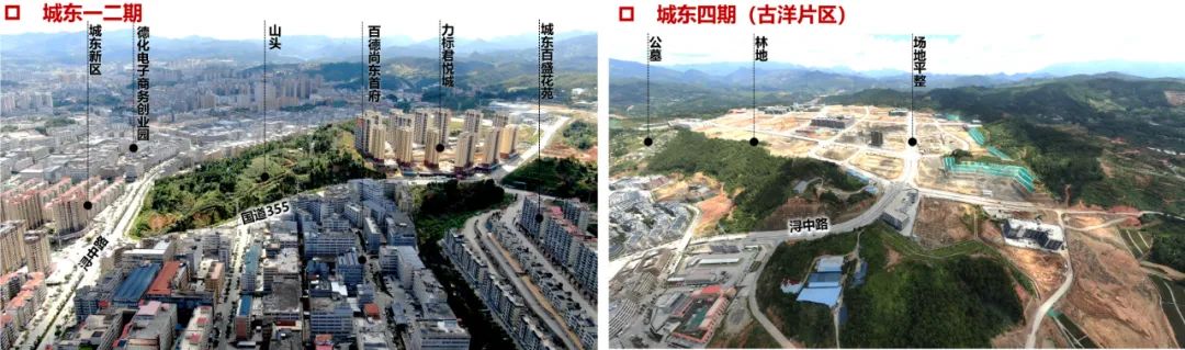 德化产业园区发展空间集中在县城东侧。最早建成的城东一期、二期以单个企业需求为主,对自然风貌破坏较为严重;三期、四期注重规划先行,整体布局、交通、配套等更为合理,但依然追求单一的土地效率,缺少对自然地形的合理利用。